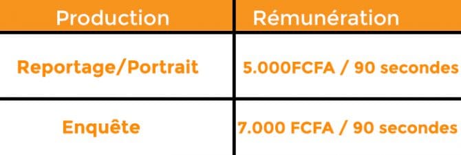 Passés les frais, la rémunération des journalistes ou techniciens est déterminée suivant la valeur du travail et suivant la longueur. C’est ainsi qu’une distinction est faite entre l’enquête et le reportage/portrait et la rémunération fixée sur la base des barèmes suivants: